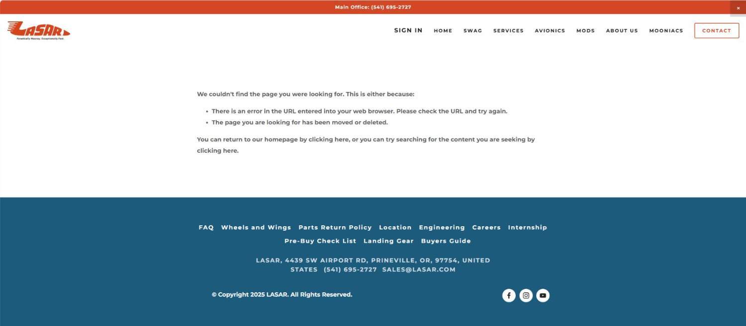 The Parts page is gone. There is no drop-down, no place holder, nothing. It used to be a good resource even if parts were not in stock. If pricing is in flux, I could understand if the prices were blank but everything is gone. I am surprised that the letter to owners did not address how this fits in with "modernizing the online experience for owners". If you click on a former LASAR "Parts" link on Google, this is what you get: - Today