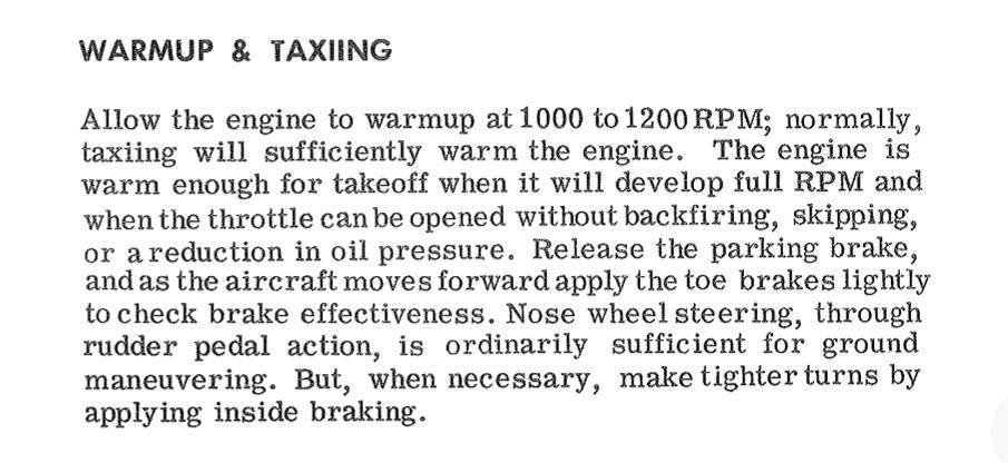 I'm also operating under the 1970 C Model POH (POH 1203) and have been following 100F as minimum before takeoff based on this same 100-225F range for continuous operation. Seems pretty clear cut for us and can probably inform the discussion for other similar engines (O-360-A1D). 100F takes about 10 minutes on the ground when running 1000-1200 RPM for me with the ambient around 40F. -