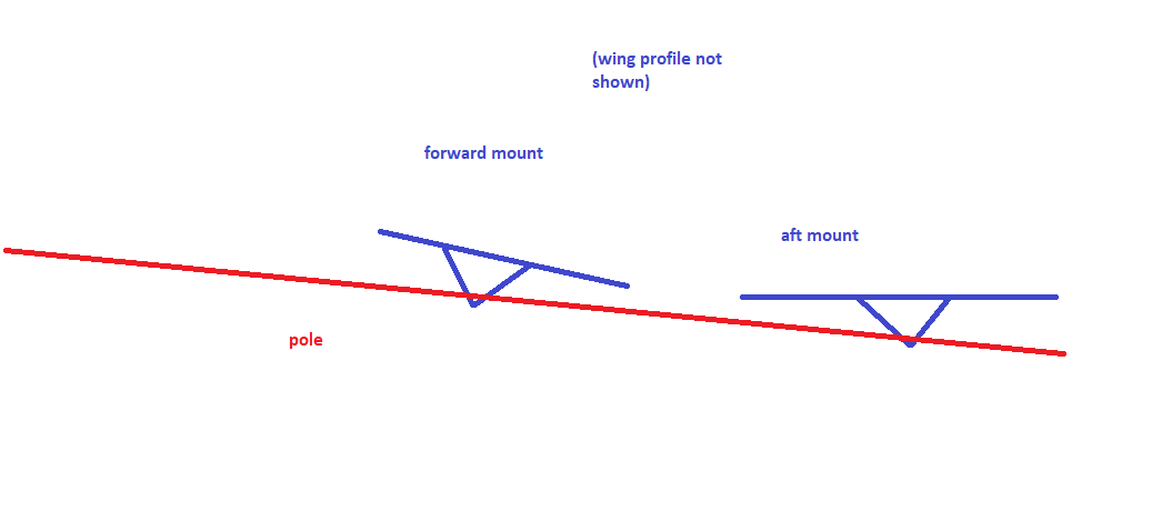Oh, I mean that if the aft plate is flat horizontal (roughly), the front plate is tilted up at an angle, vs two mounting plates on the same "plane" as if they were sitting on a flat table. Here's a terrible illustration. I assume the pole just gets snugged in the mounts and it's good to go? Too tight and it'll yank on the plates trying to straighten them out.