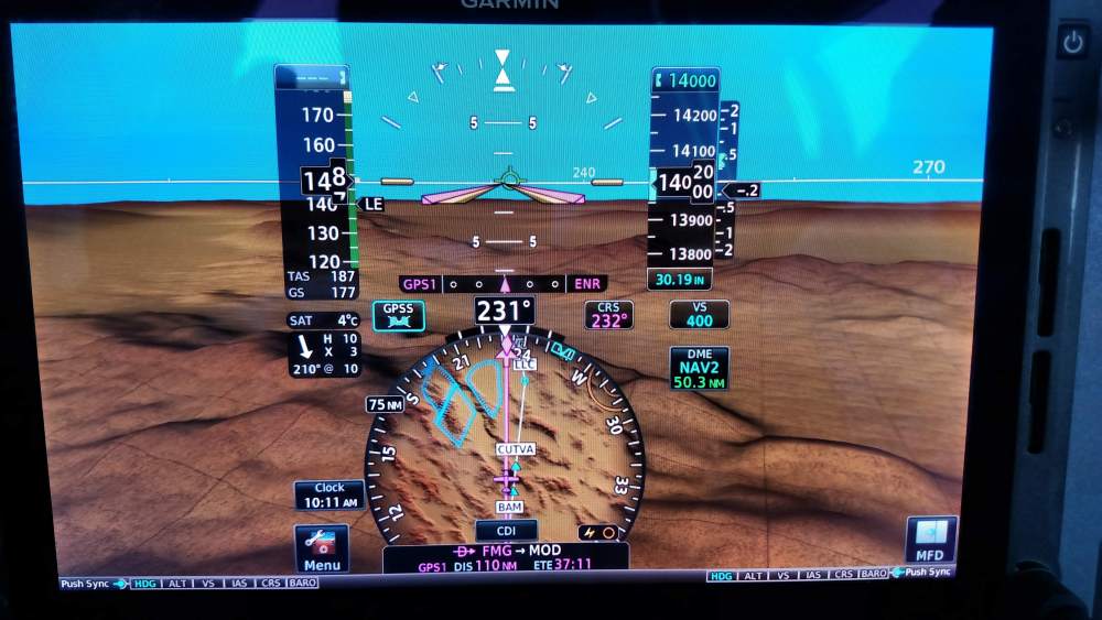 I posted this on Beechtalk, but for those who don't go there, here it is again. I now have about 30 hours with the G500 TXi, upgraded from the G500. The upgrade was finished a couple of days before Oshkosh. I spent 4 hours before leaving for Oshkosh getting acquainted with it doing multiple approaches, Then I flew it from San Jose to Madison to Rapid City to Ogden and then back to San Jose. I'm glad I did the upgrade, but...First off I'd be interested in knowing whether anyone who has done the upgrade has had issues with the touch screen. I have NEVER ONCE had issues with the GTN 750 and GTN 650, but on at least 3 occasions on this trip the touch screen was not at all responsive to my touch. I had to touch it multiple times before it would recognize my touch. This has happened with the Baro icon the Heading icon and the V/S icon.I have found that having the PFD on the left is somewhat problematic for me. In split screen mode reaching over with my right hand to change the knob position for a heading change is awkward. OTOH when given an altitude change it is easy to turn the knob with my left hand then tap the ARM with my right hand, then advance to the V/S with the left hand and tap the V/S to ARM the vertical speed with the right. In full screen mode I just use the right hand for heading changes, but have found that when going back to split screen I sometimes use the right hand before I realize I need to use the left. I never noticed any of these issues with the G500 original. I may just go ahead and reverse the screens.The HSI map may be nice if you don't have a GTN, but I have found that is is not very useful for me. There is not enough detail, but then again, the screen is not very large inside that enlarged HSI. I always switch back to the legacy HSI as I enter the terminal area.I can't decide whether I like the 60/40 PFD/MFD. I think I would rather have it 50/50 like the old G500. I wish Garmin gave that as that option.System setup is much easier than with the legacy G500 and I really do like the larger screen. Enroute with no difficult enroute weather I use the large screen. With possible problematic weather, I use the split screen in combination with the GTN 750/GTN 650/ Aera 796/iPad each displaying a different weather product.I've attached a couple of photos showing the view out the window over Nevada where smoke from the fires cut visibility to near IFR conditions, and what it looked like on the G500 TXi.